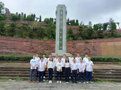 微微细雨,松柏苍翠。清晨,一行人乘车来到乐山烈士陵园为牺牲的烈士扫墓。纪念碑前,烈士的战友为在场人员讲述了两位烈士的光荣事迹。全体人员怀着对烈士的崇敬之情,集体默哀、敬献花束、鞠躬致敬。