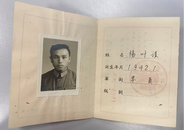 1964年,那时十所属于部队建制,当时的政策要求大学毕业的同志要下连当兵,因此刚到所里的杨叶谨就加入到54军 130师 389团9连当兵。这是一支参加过1962年中印边境自卫反击战的光荣部队,他还清晰地记得部队当时是驻扎在乐山市犍为县。在当兵期间,印巴冲突正处于白热化阶段,杨叶谨所在的部队也接到了前往西藏的通知,每个人都准备好了前往边境的物资,只等一声令下。但快要上战场时,成都军区考虑到他们是高等院校毕业,应该到科研生产岗位去发挥更大的作用,因此,杨叶谨在当兵的第十一个月就回到了所里。