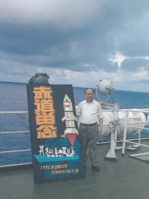 (1994年 杨叶谨随“远望二号”航天测量船执行任务途中经过赤道留影)